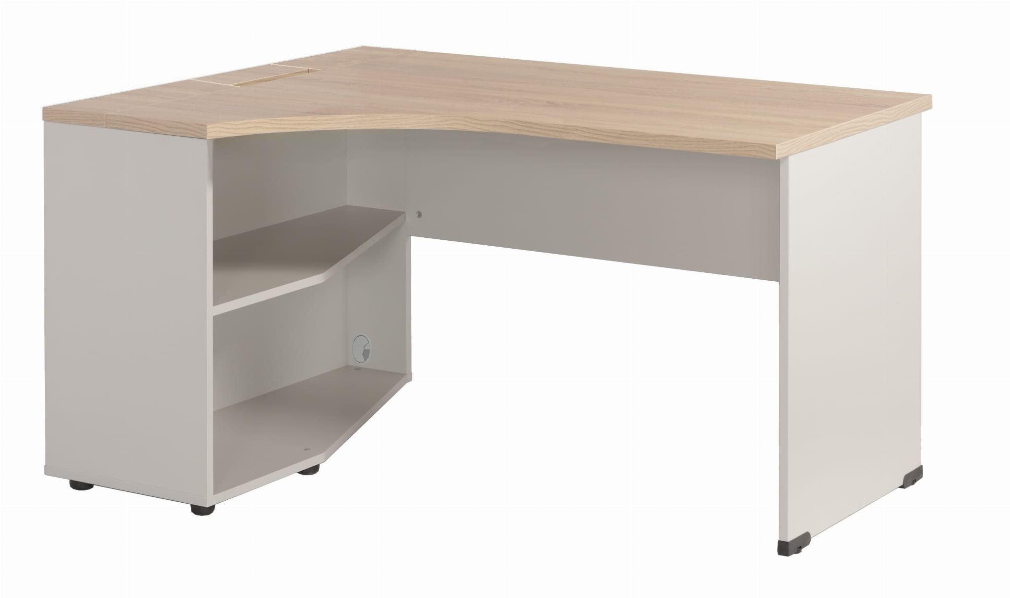 Opis: Biurko profilowane z szafką na komputer i drukarkę po lewej stronie
