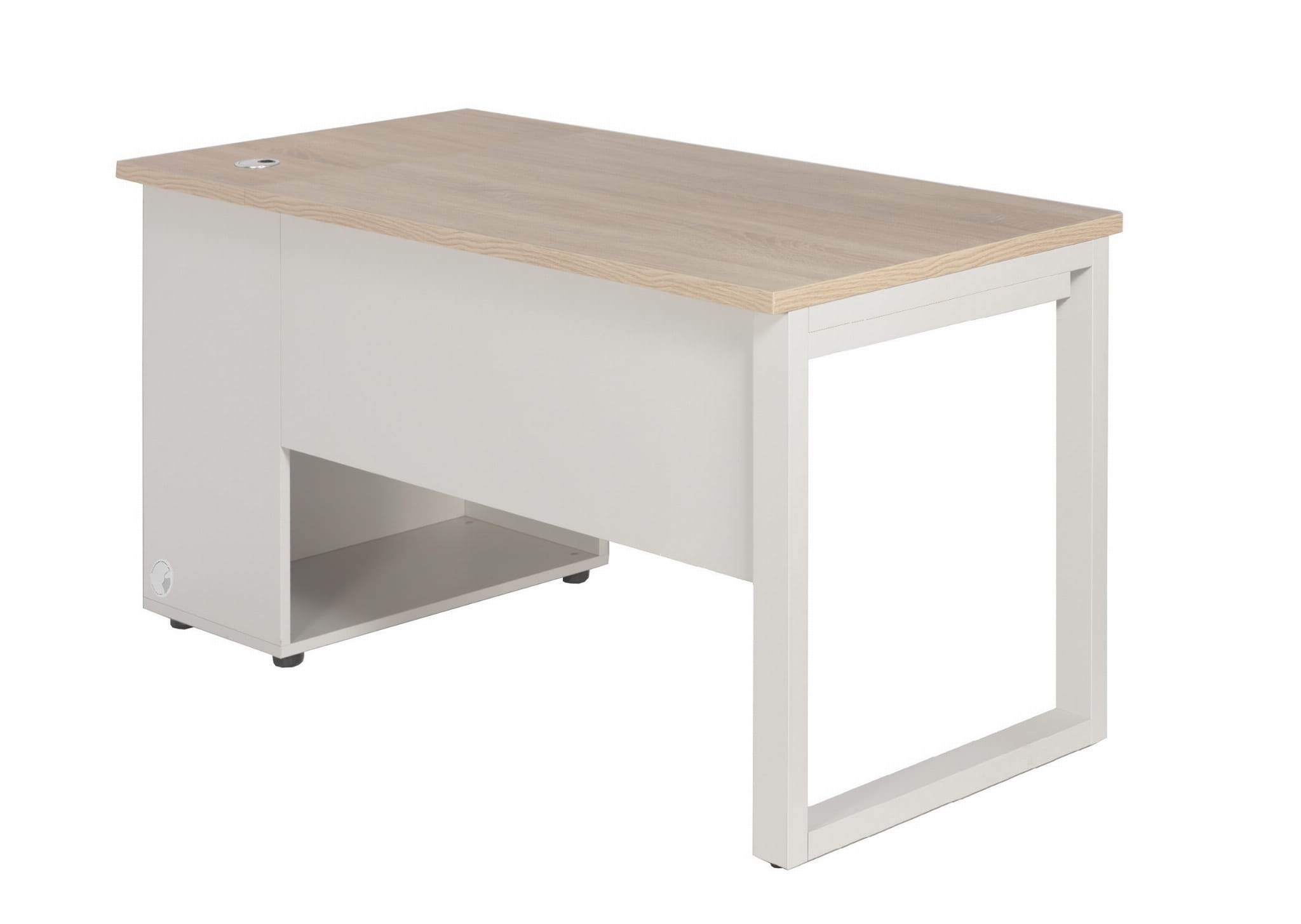 Opis: Biurko prostokątne z szafką na komputer i drukarkę po prawej stronie
