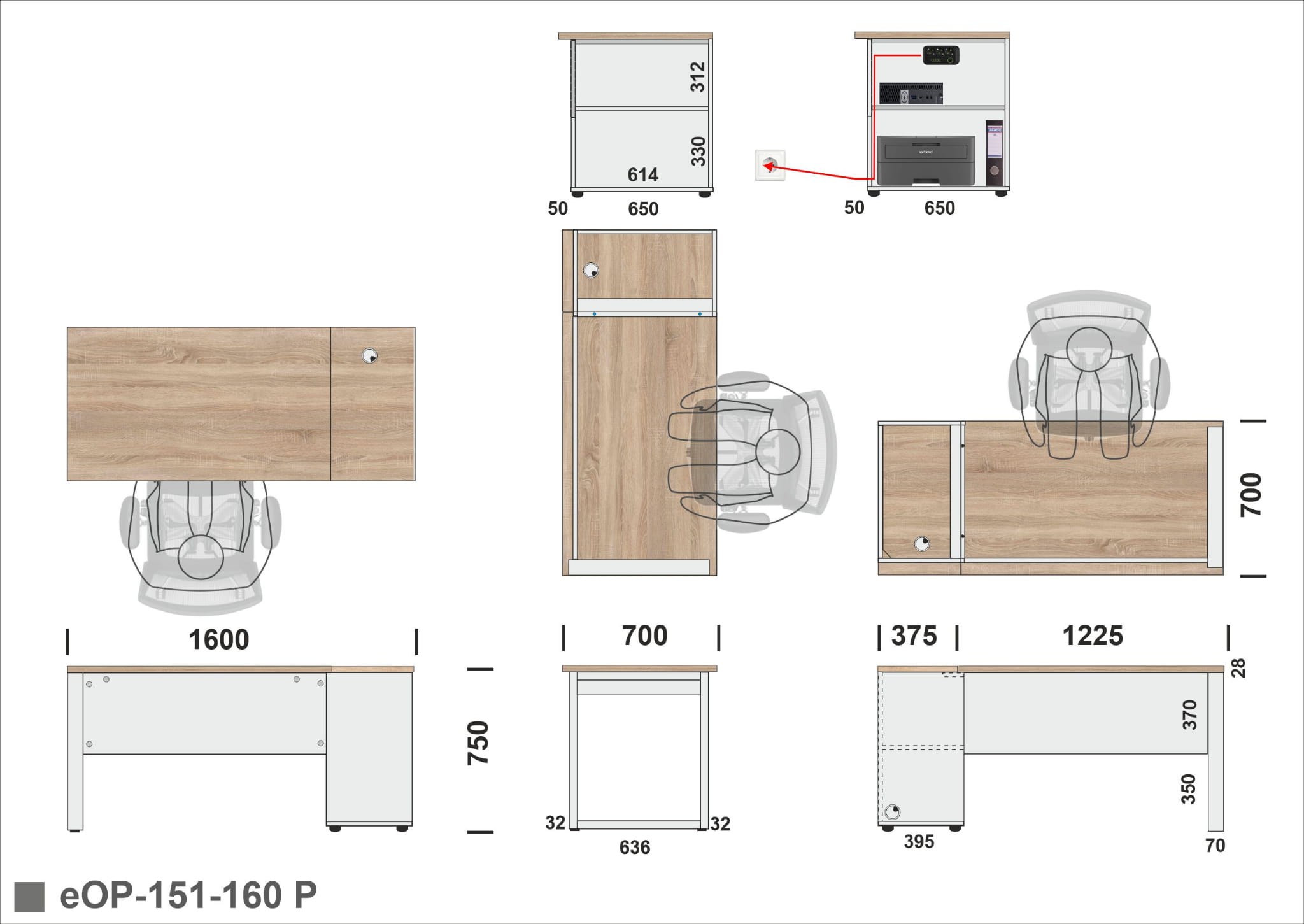 Biurko 160 x 70 z otwartym bokiem i szafką wewnętrzną na komputer i drukarkę