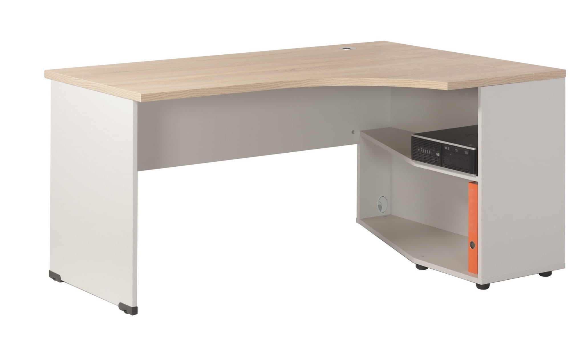 Opis: Biurko profilowane z szafką na komputer i drukarkę po prawej stronie