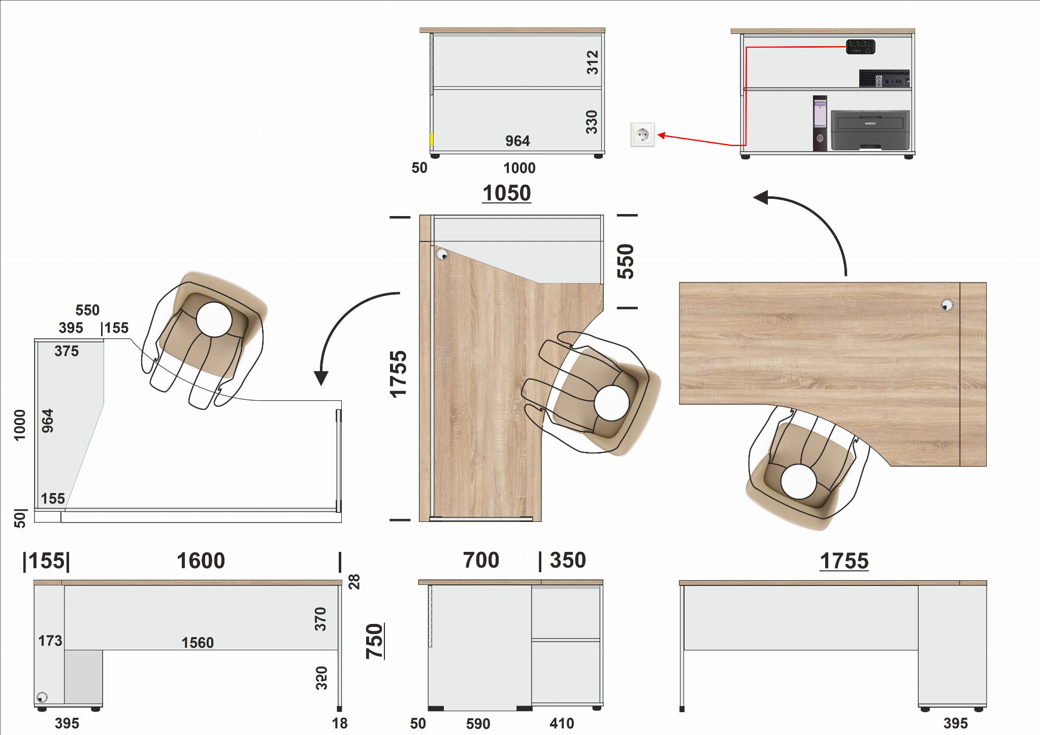 Forma dostawy: Biurko do montażu, szafka w całości + bok + blenda + blat