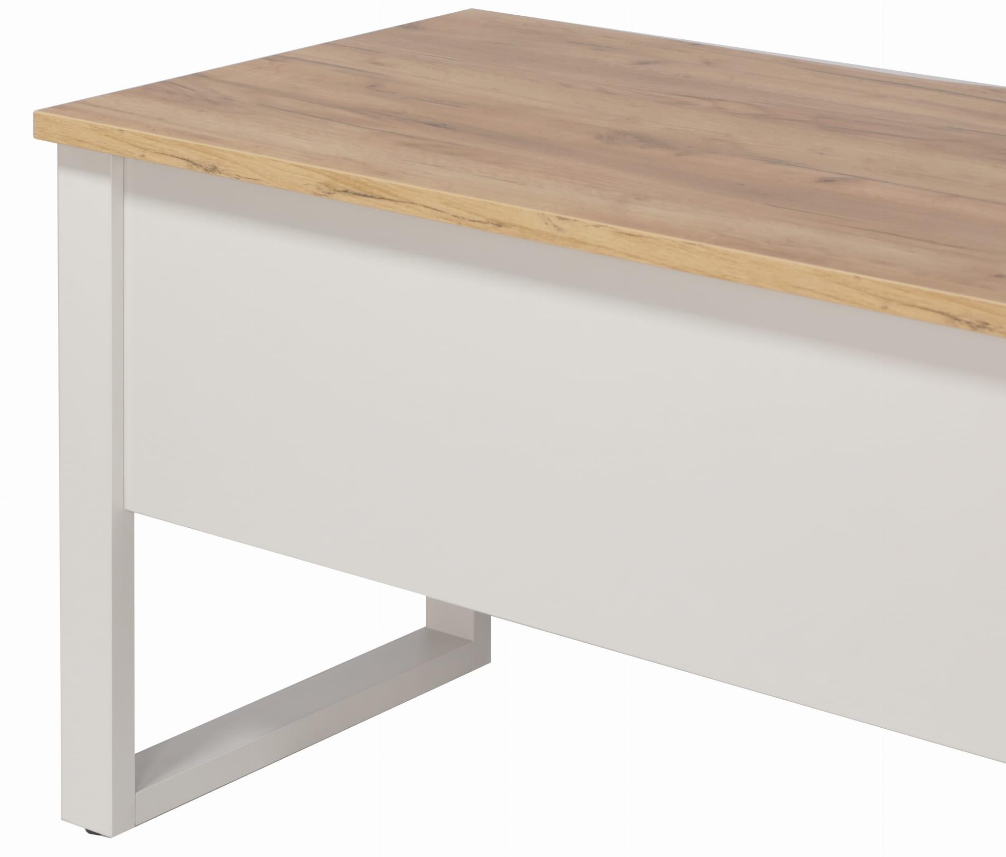 Biurko z nogą ramową 176x105 z szafką pod blatem z lewej strony profilowane na głębokość 55 cm