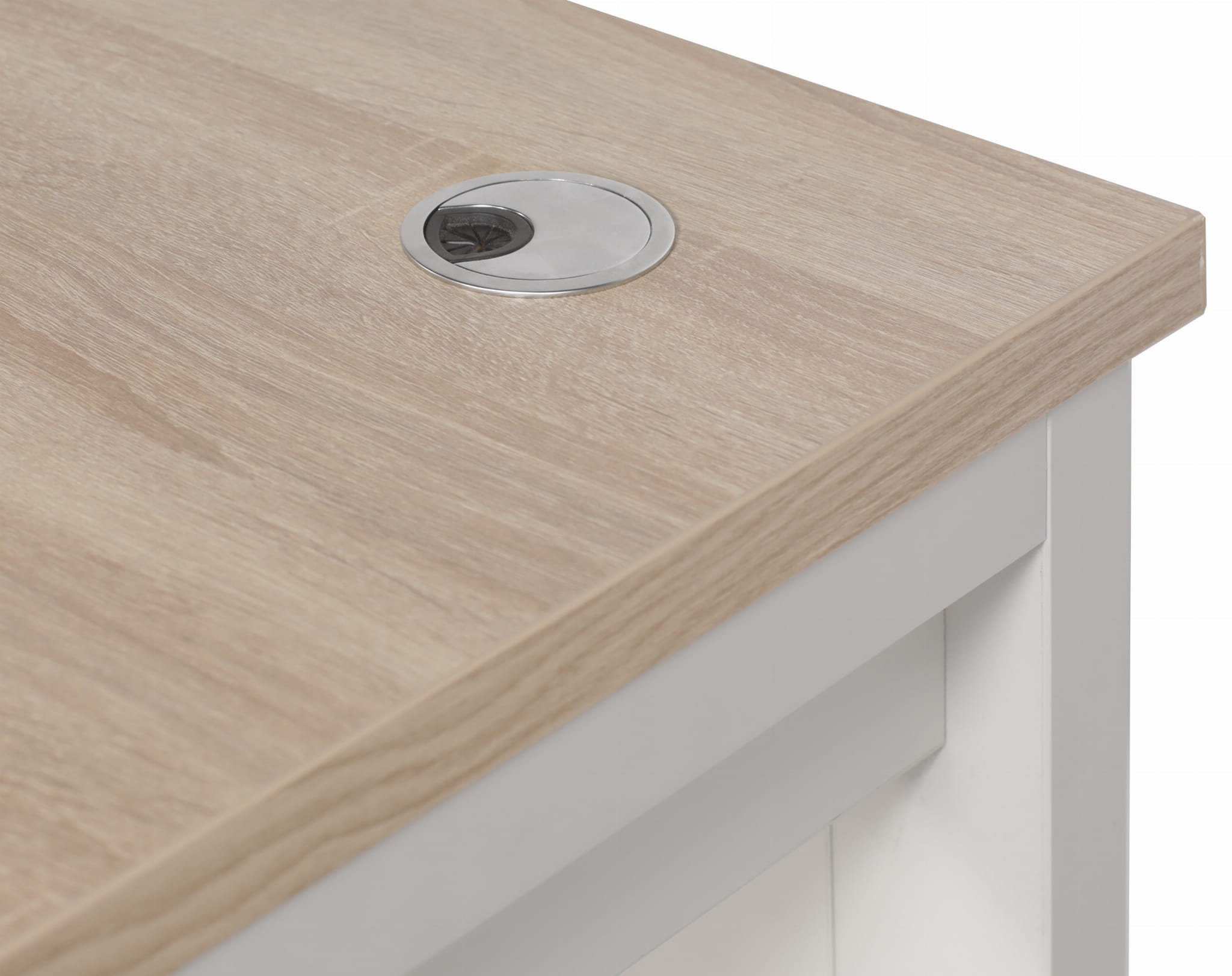 Opis: Biurko prostokątne z szafką na komputer i drukarkę po prawej stronie