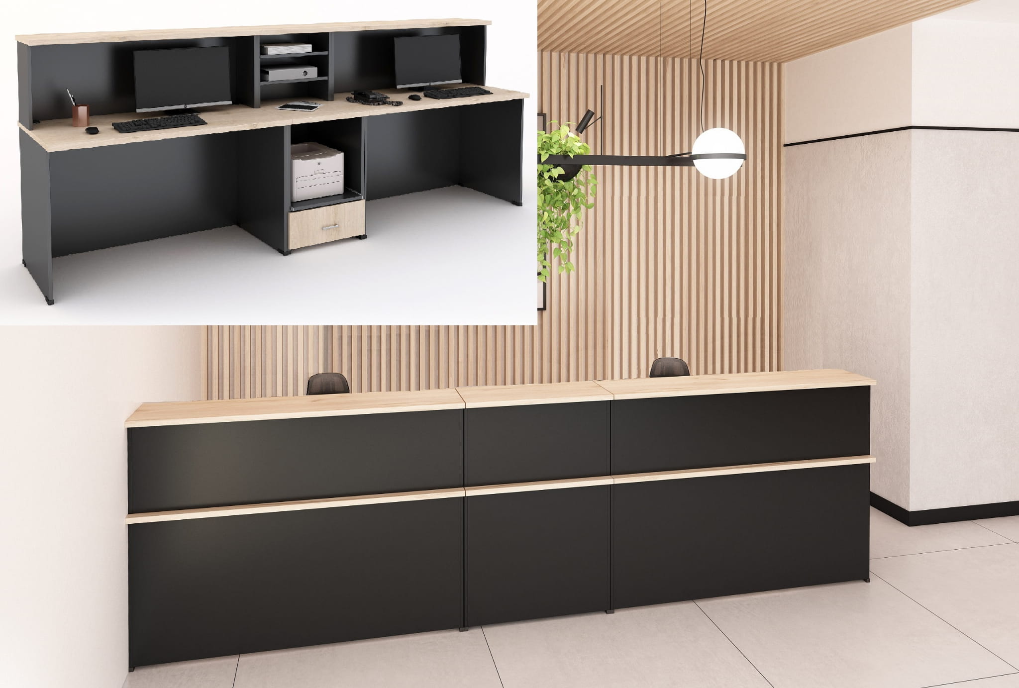 Opis: Lada na korpusie z płyty z nadstawką - moduł szuflada + półka wysuwana na drukarkę