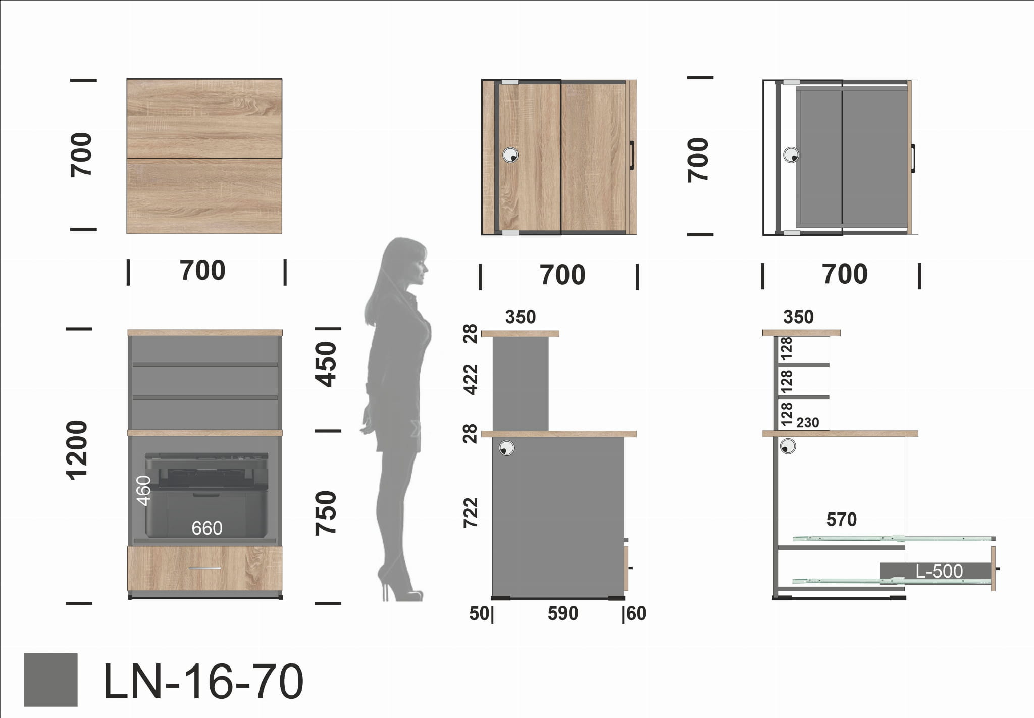 Lada z nadstawką moduł szuflada + półka wysuwana na drukarkę | LN-16-70
