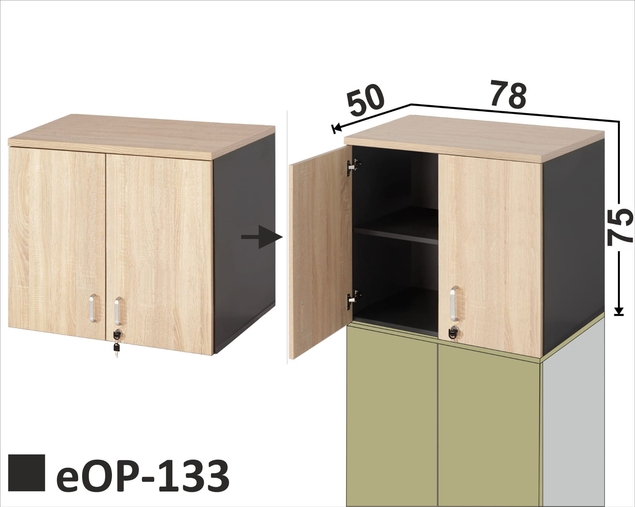 Opis: Nadstawka 2 poziomy na segregatory, drzwi z zamkiem