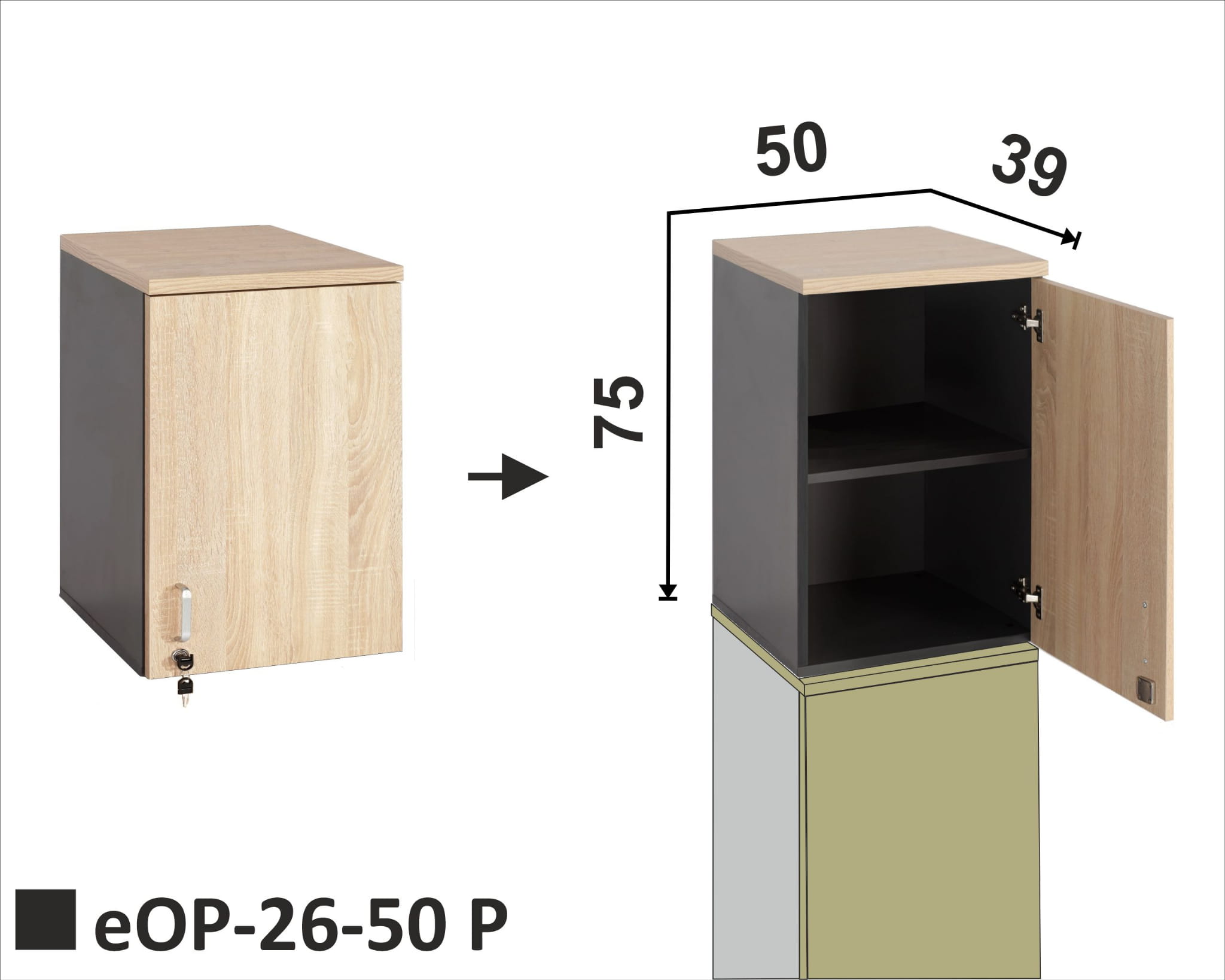 Opis: Nadstawka 2 poziomy na segregatory, drzwi z zamkiem otwierane na lewo
