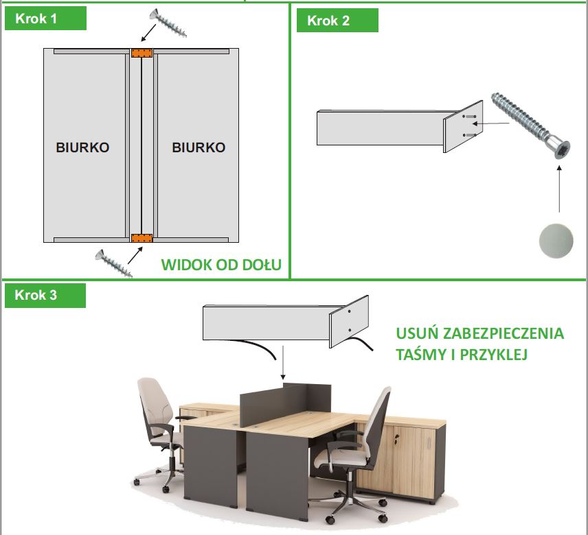 Produkt: przegroda na biurka o szerokości 183 cm (przeklejana na taśmę dwustronną)