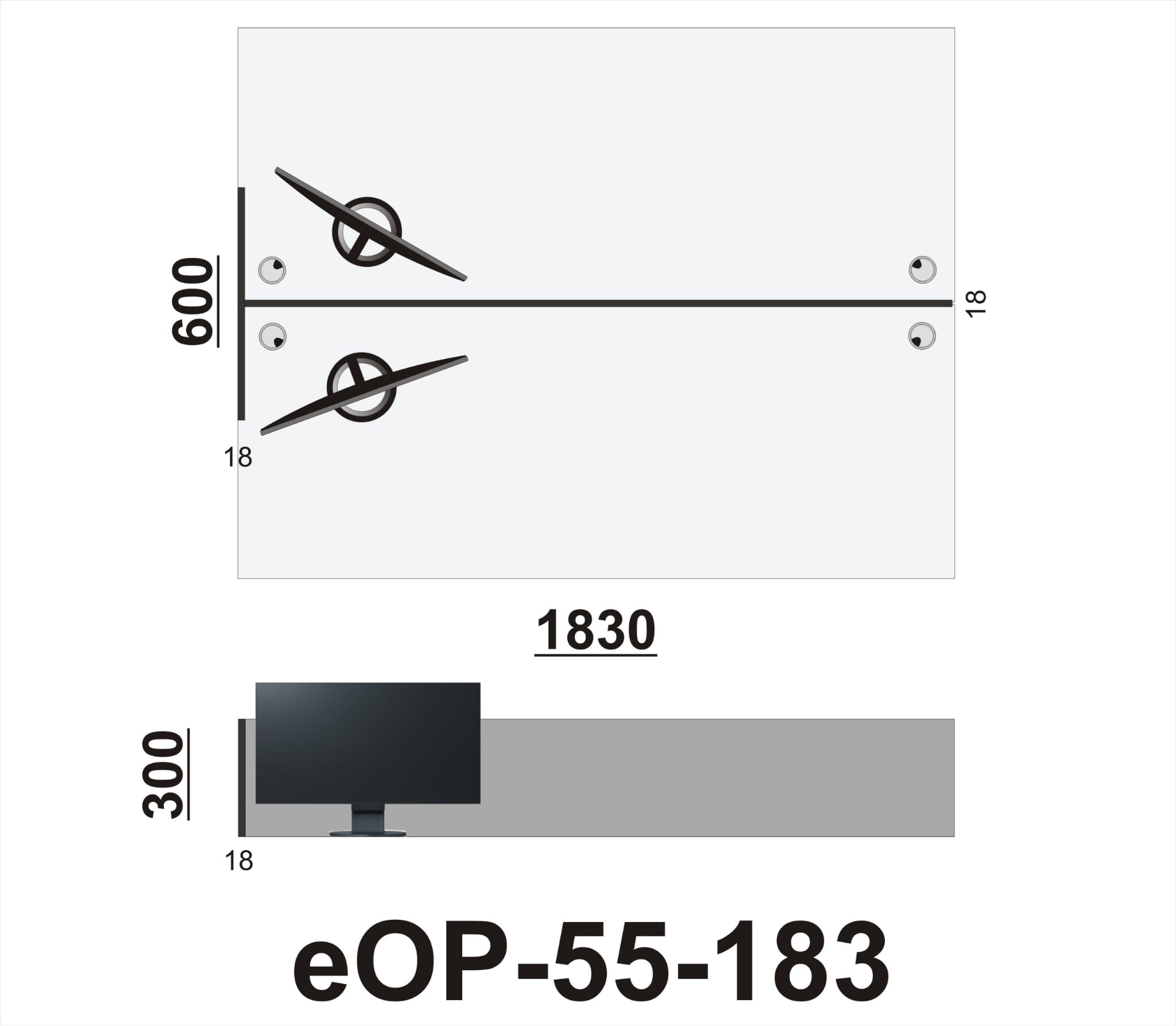 Przegroda na dwa połączone biurka 183 cm | eOP-55-183