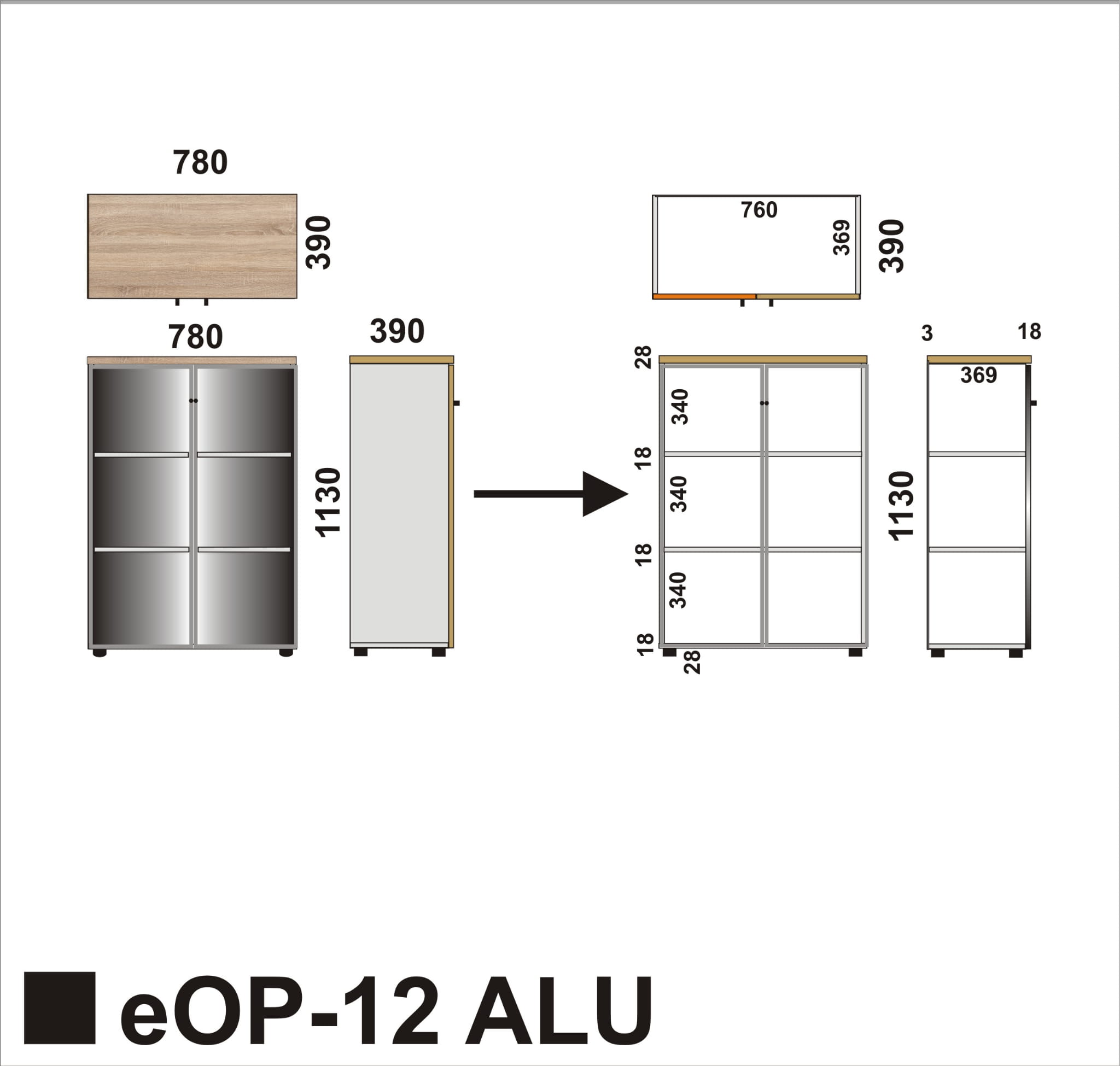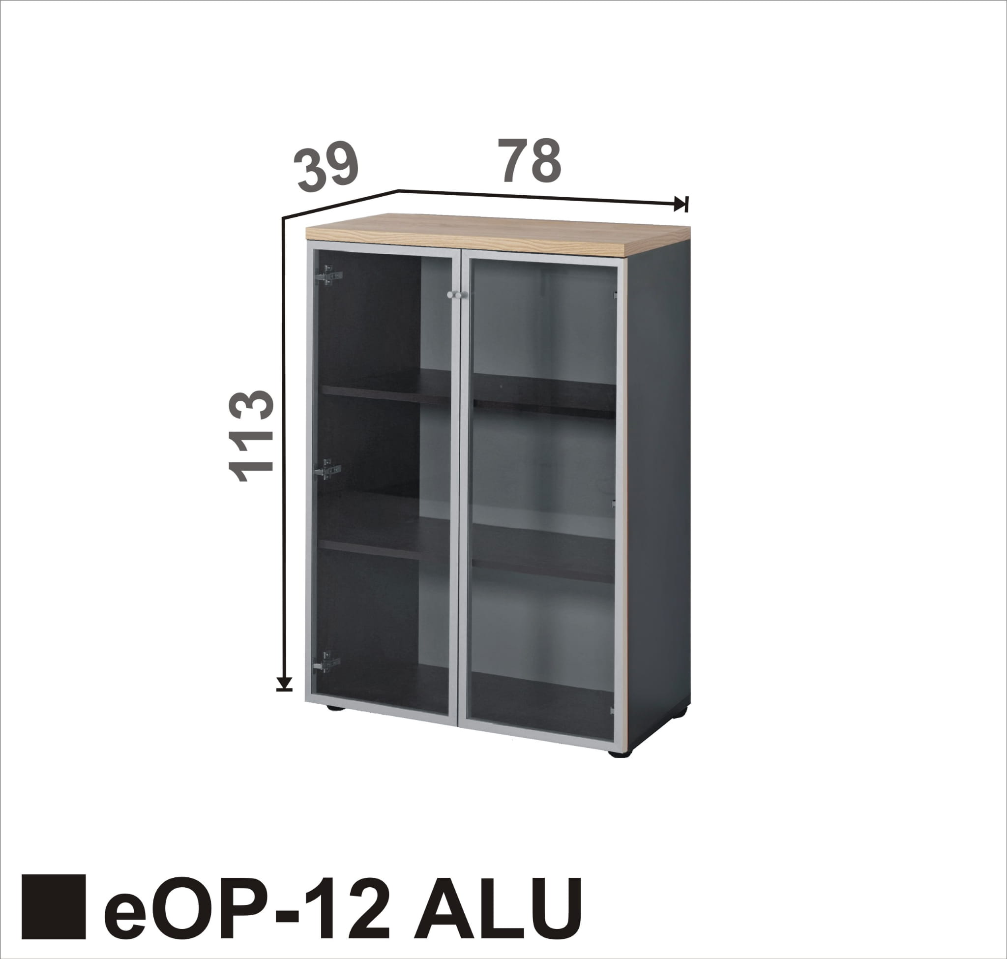 Regał 3 poziomy, witryna ramka alu otwierana na lewo | eOP-12 ALU