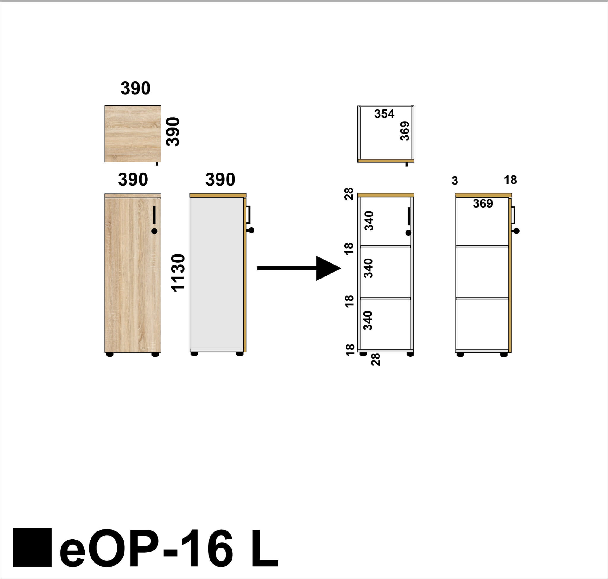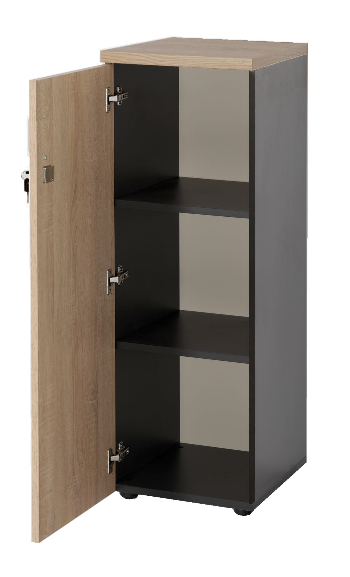 Opis: Regał z trzema poziomami na segregatory, drzwi otwierane na lewo z zamkiem
