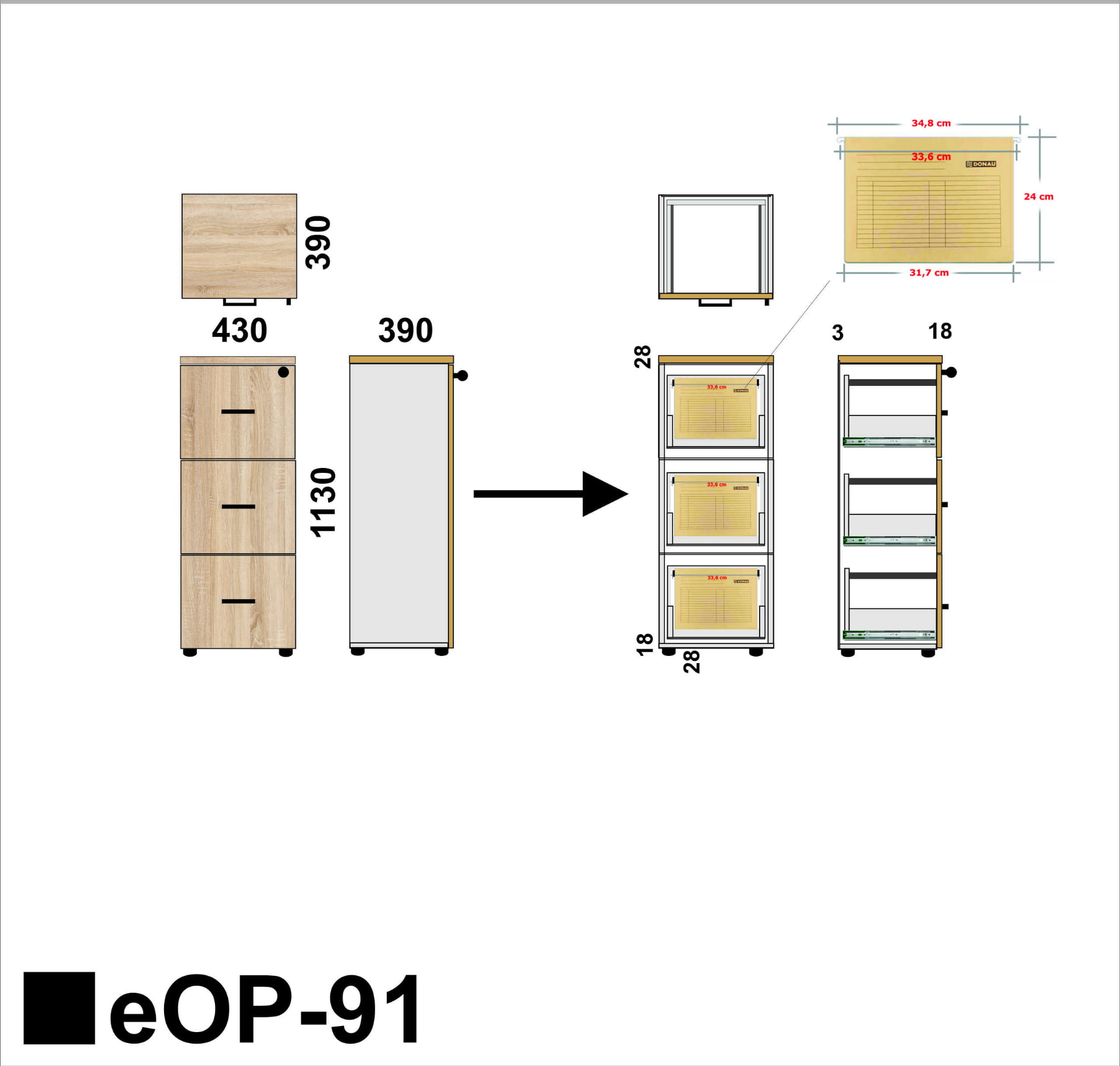 Opis: Regał z 3 szufladami na akta z zamkiem centralnym