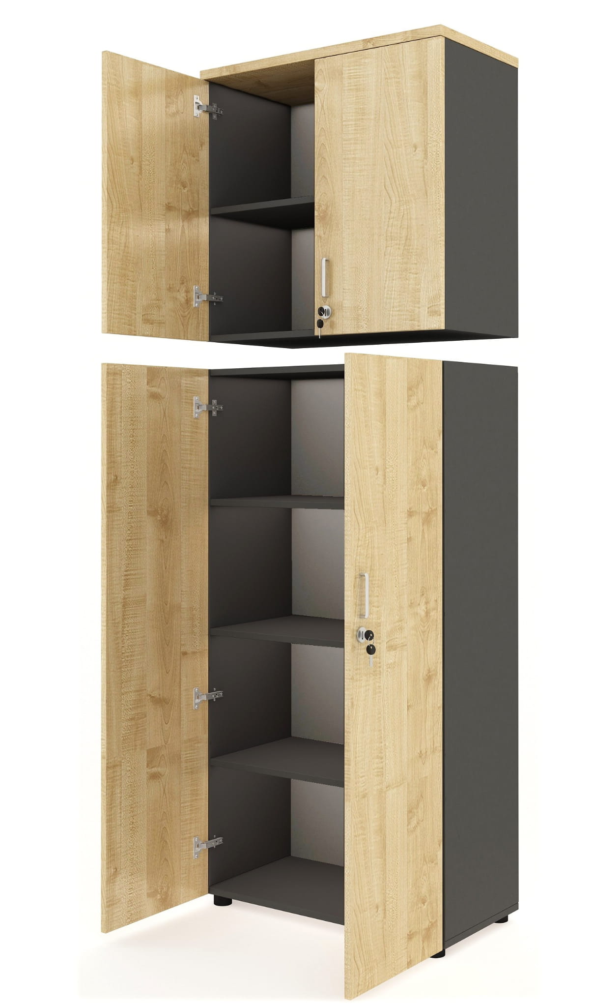 Regał 6 poziomowy, drzwi z zamkiem , moduł dolny 4 poziomy + nadstawka 2 poziomy