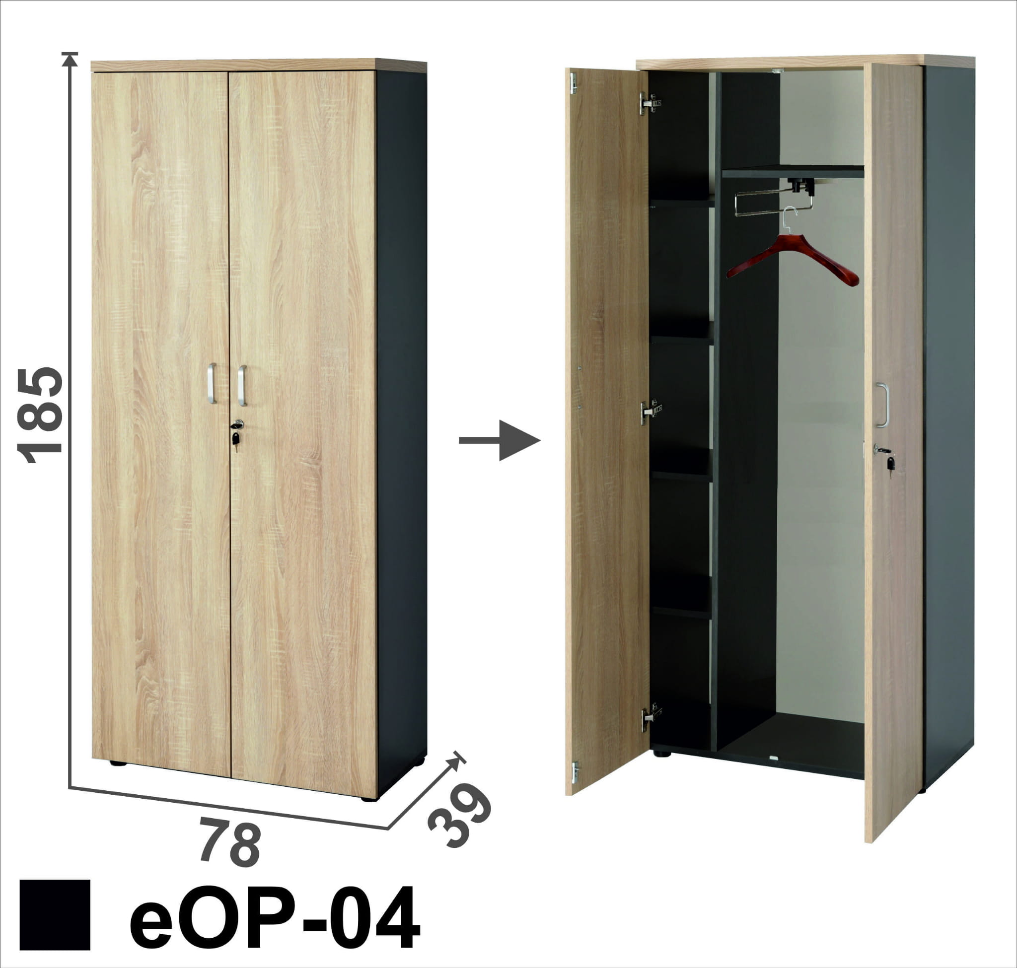 Opis: Regał biurowo-ubraniowy z puzonem na wieszaki, drzwi z zamkiem.