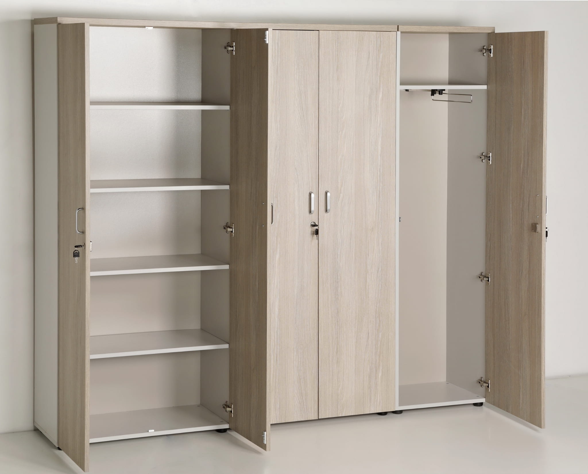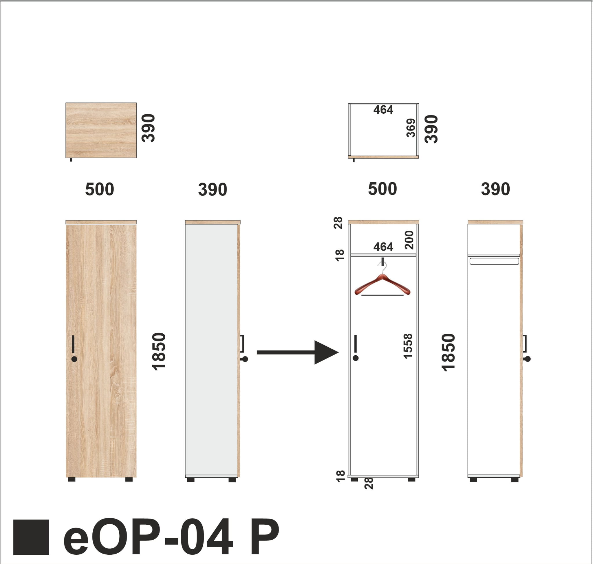 Opis: Regał ubraniowy z puzonem na wieszaki, drzwi otwierane na prawo z zamkiem
