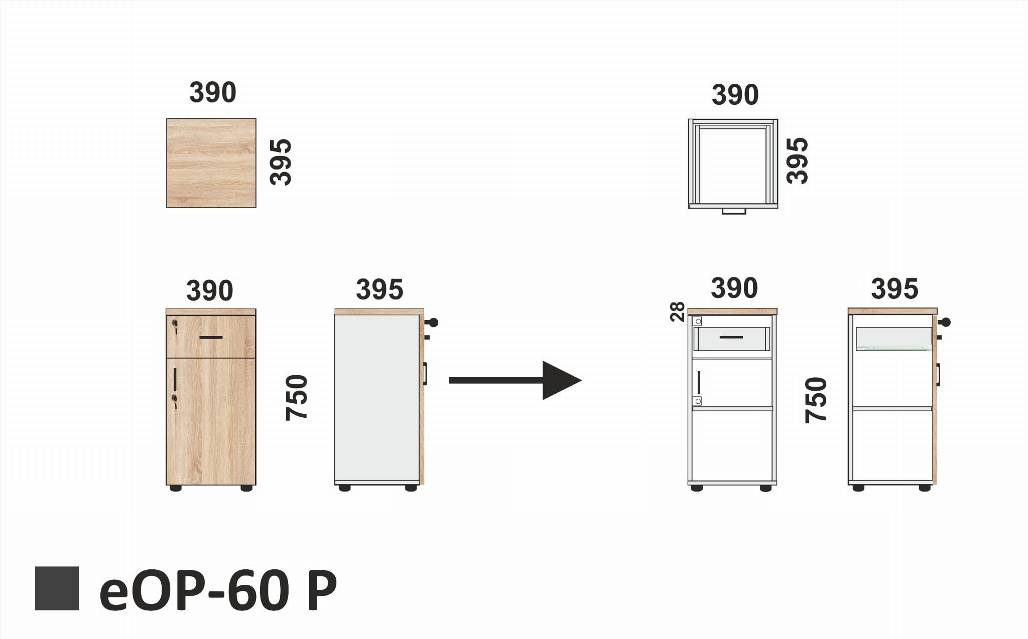 Szafka 1 szuflada z zamkiem i 1 drzwi otwierane na prawo z zamkiem | eOP-60 P