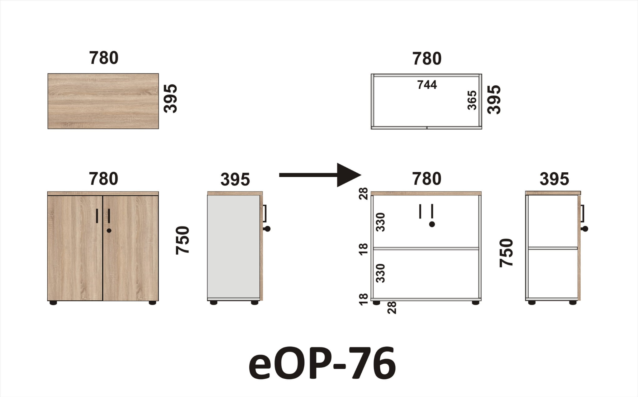 Szafka dwudrzwiowa 2 poziomy na segregatory, zamykana z tyłem z płyty 18 mm w kolorze boków